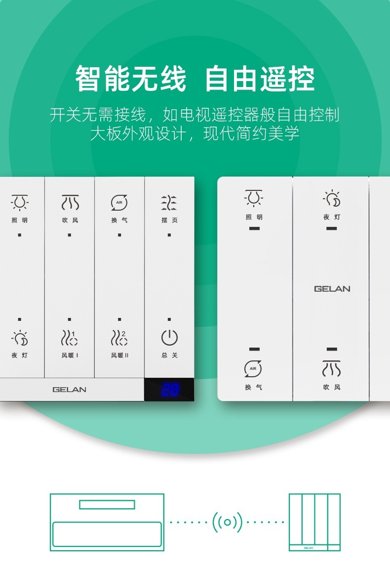 每天你都在與時間賽跑,爭分奪秒,每個寒冬你都在為洗澡而頭皮發(fā)麻,瑟瑟發(fā)抖!直到遇見了GELAN格蘭電氣,你會發(fā)現每天都如此的美好!GELAN格蘭智暖浴霸給您一個完美的沐浴享受。