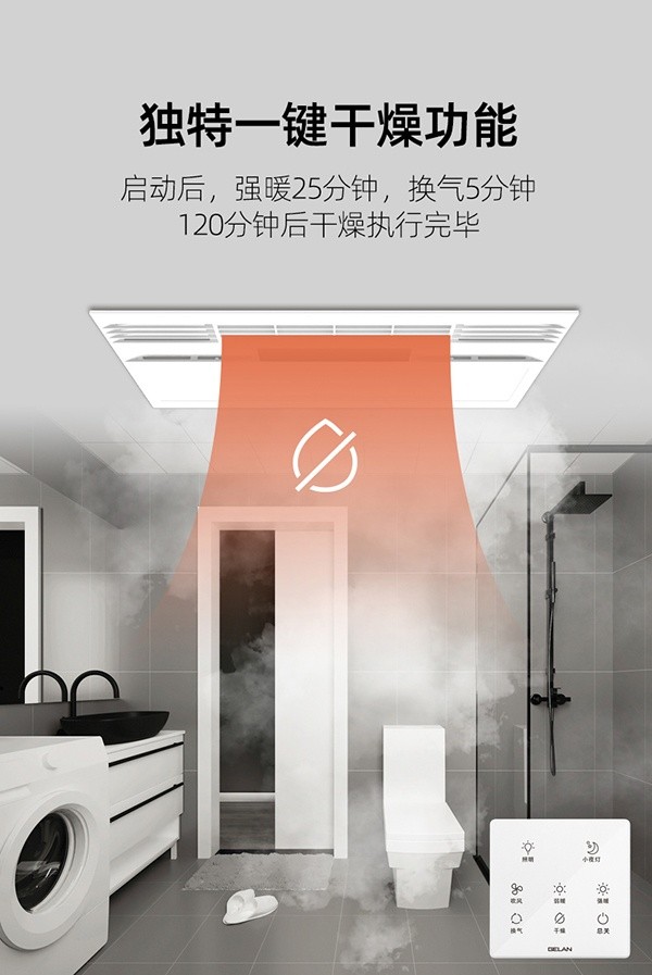 一鍵開(kāi)啟干燥,加速快速烘干,強(qiáng)勁風(fēng)力吹干水汽,循環(huán)四次可驅(qū)除室內(nèi)干燥,運(yùn)行結(jié)束自行關(guān)機(jī),體驗(yàn)智能生活。