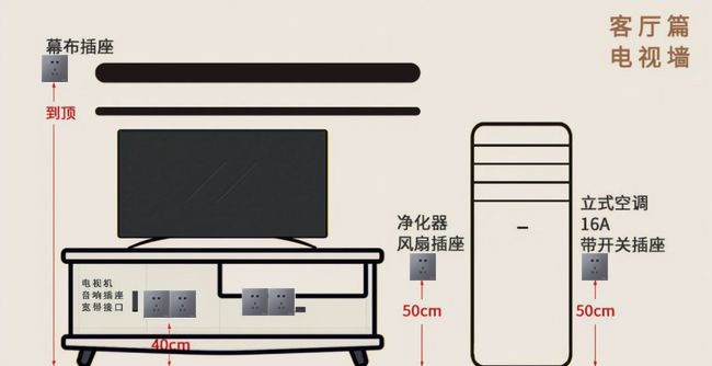 友情提醒:安裝插座前記得先量好客廳家具的尺寸,不要等插座裝完,家具搬進去后才發(fā)現(xiàn)被擋住了,裝了等于白裝。