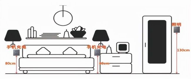 照明開關(guān)的安裝高度建議≥130cm,正好是一伸手就可以夠得著的高度。