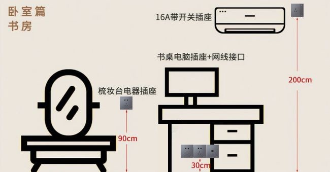 至于梳妝臺附近要不要預(yù)留插座,就看家里的女主人有沒有在臥室化妝的習(xí)慣,有的話建議裝1個插座,吹頭發(fā)、卷發(fā)棒都需要用到插座。
